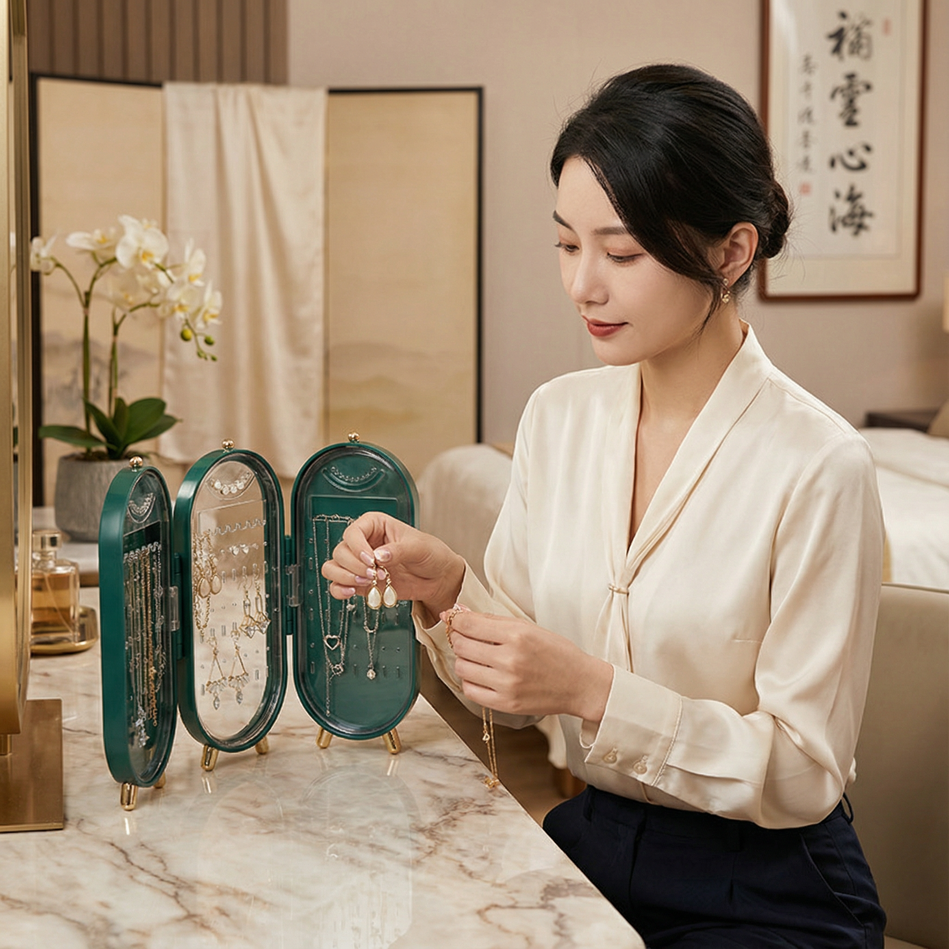 - 🌸 ジュエリーが常に手の届くところに: すべてが整理され、すぐに見える状態に – 朝の忙しい時間でももう探す必要はありません。