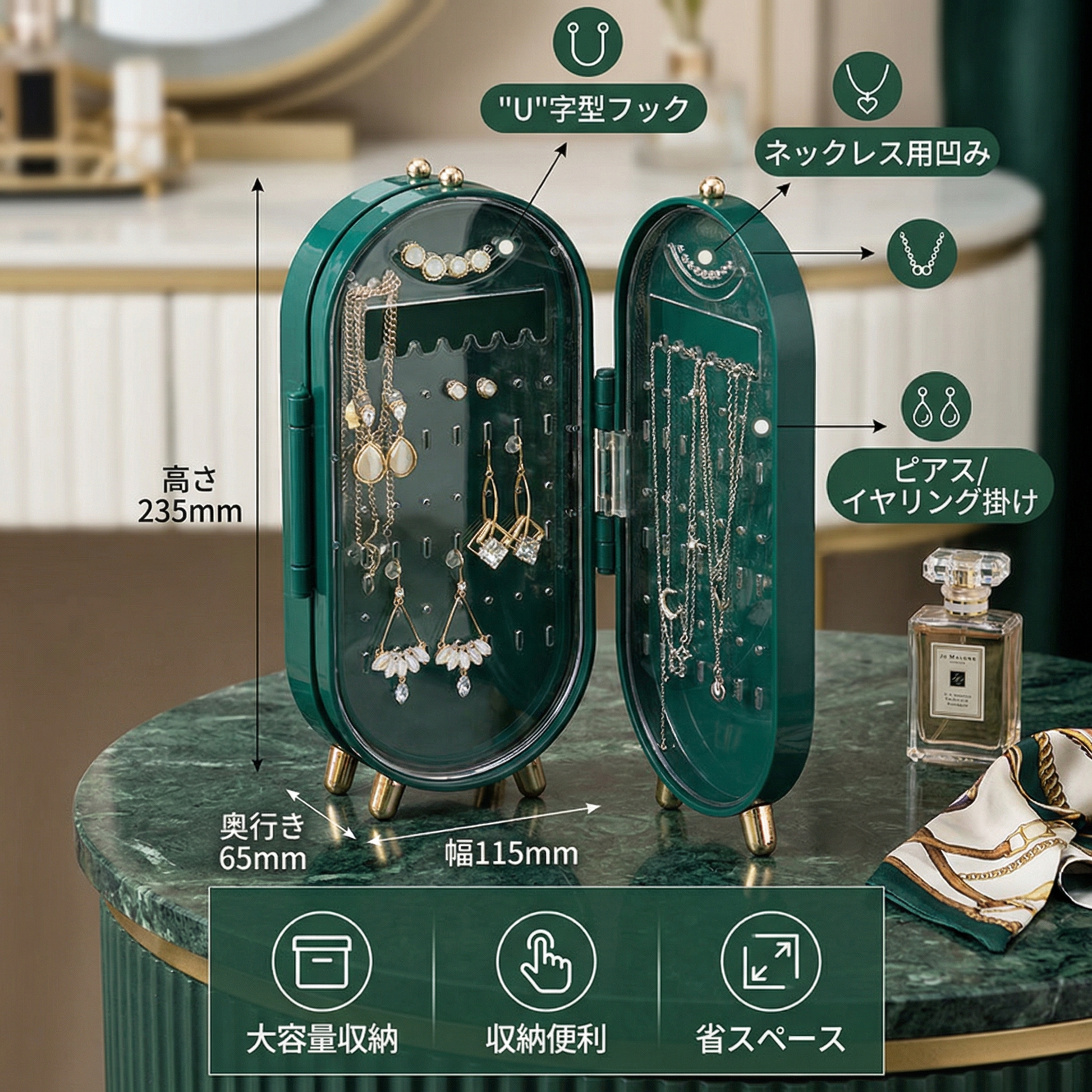 - 💎 スタイリッシュなジュエリー収納