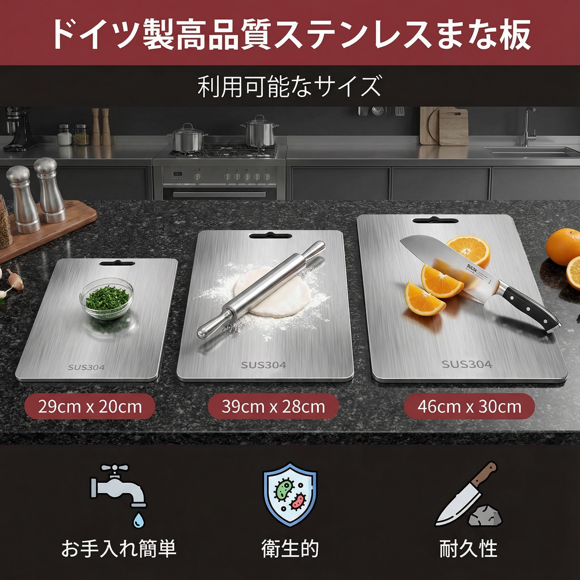 ドイツ製高品質ステンレス製まな板