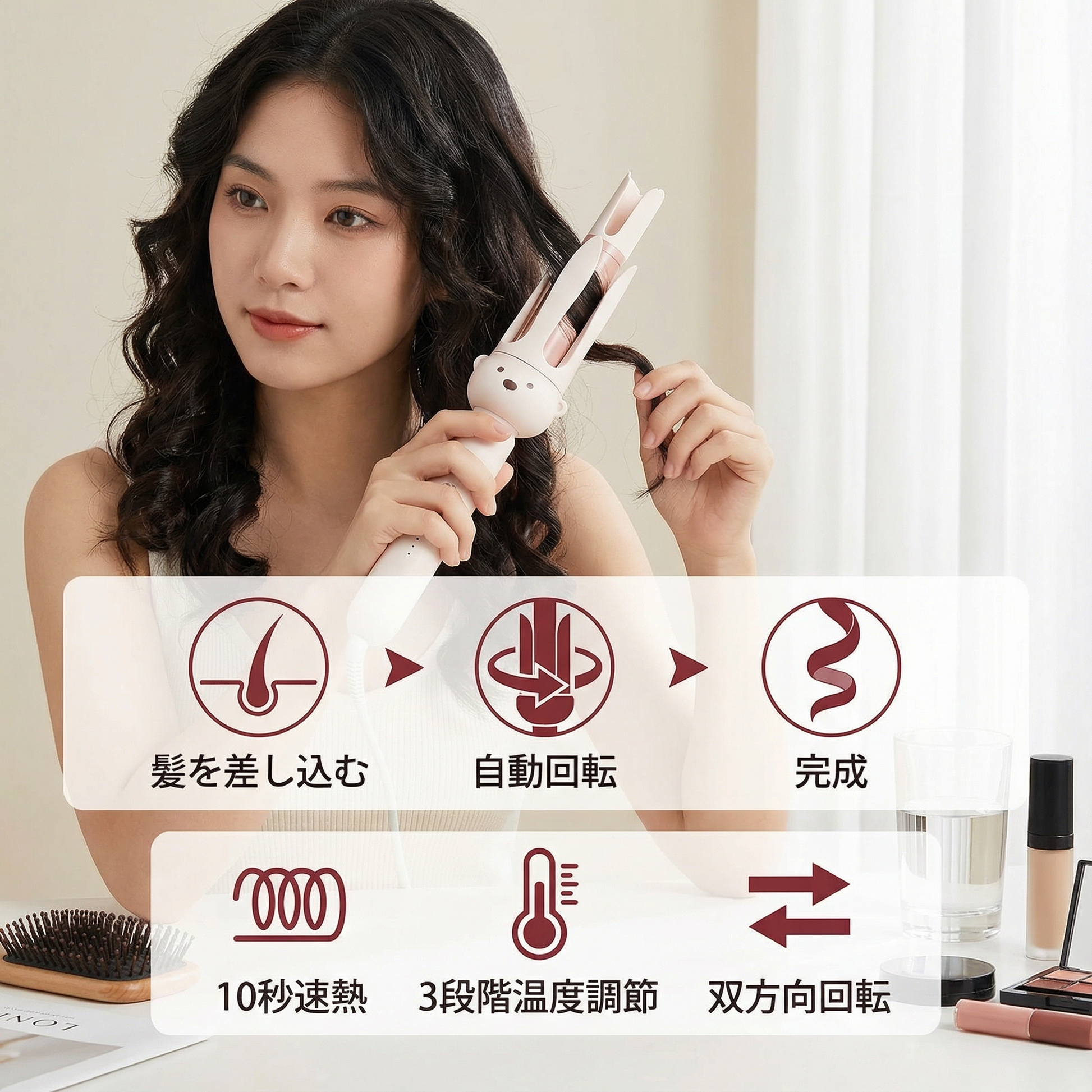 ベアデザイン 自動カールアイロン 32mm ― 電動回転式ヘアスタイラー