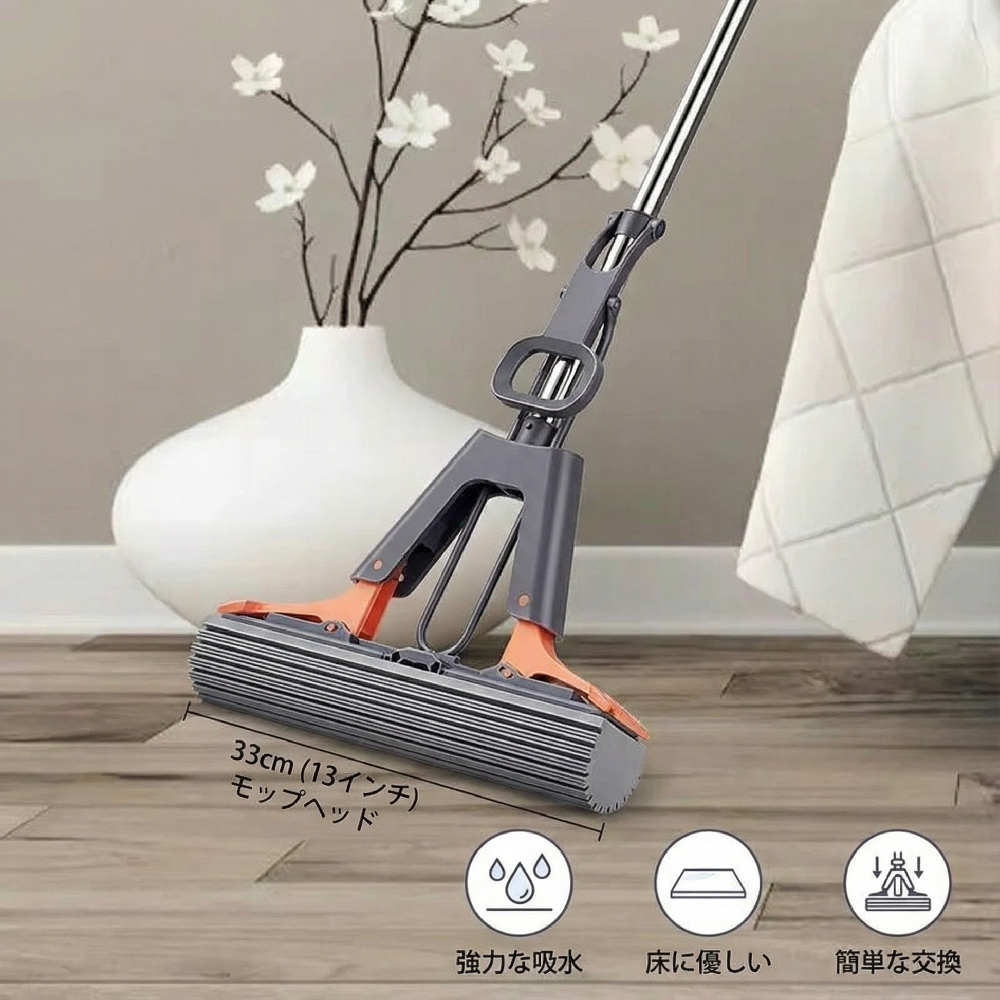 • 💧 効率的な水分吸収: スポンジヘッドは水分を効率的に吸収し、速乾性があります。