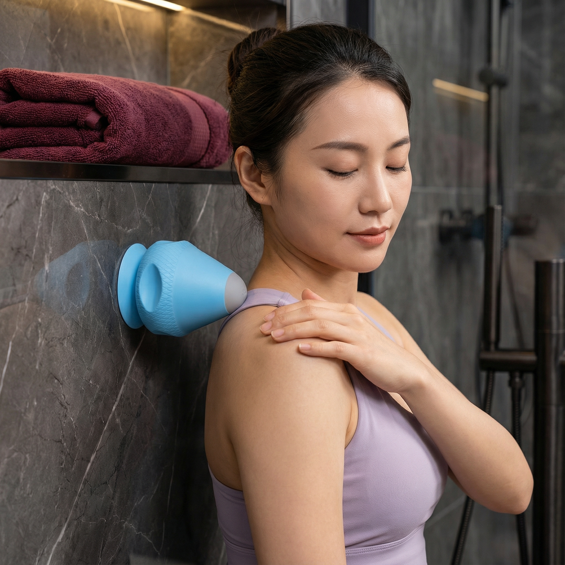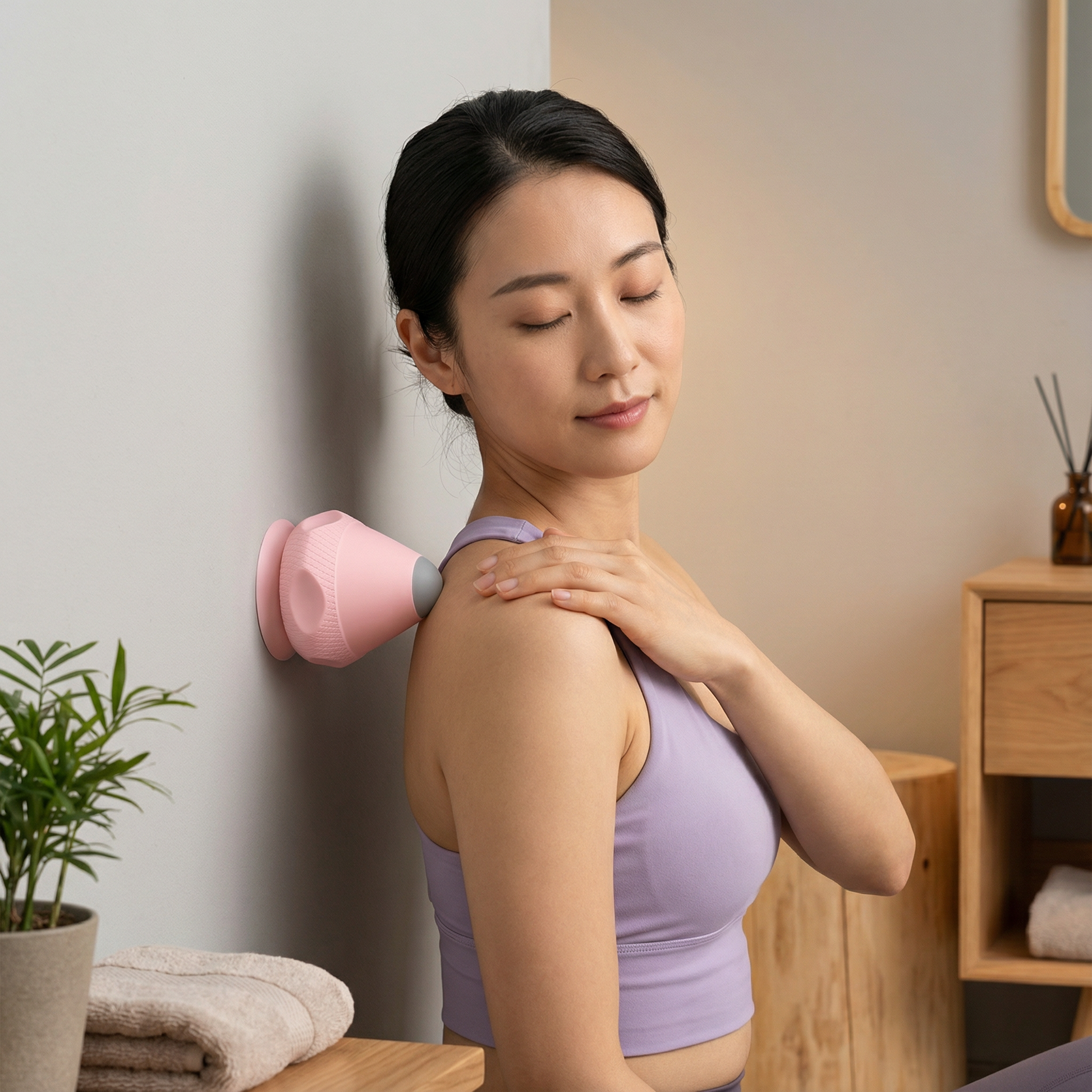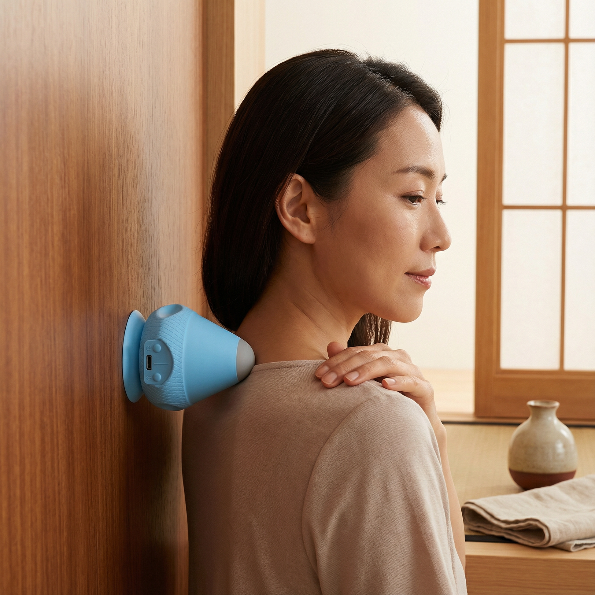 吸盤付きなので、滑らかな面に固定するだけで、誰の手も借りずにコリをほぐすことができます。リビング、オフィス、フィットネスジムなど、どこでもすぐに使用可能。自分の体調や目的に合わせて、柔軟にマッサージを行えます。