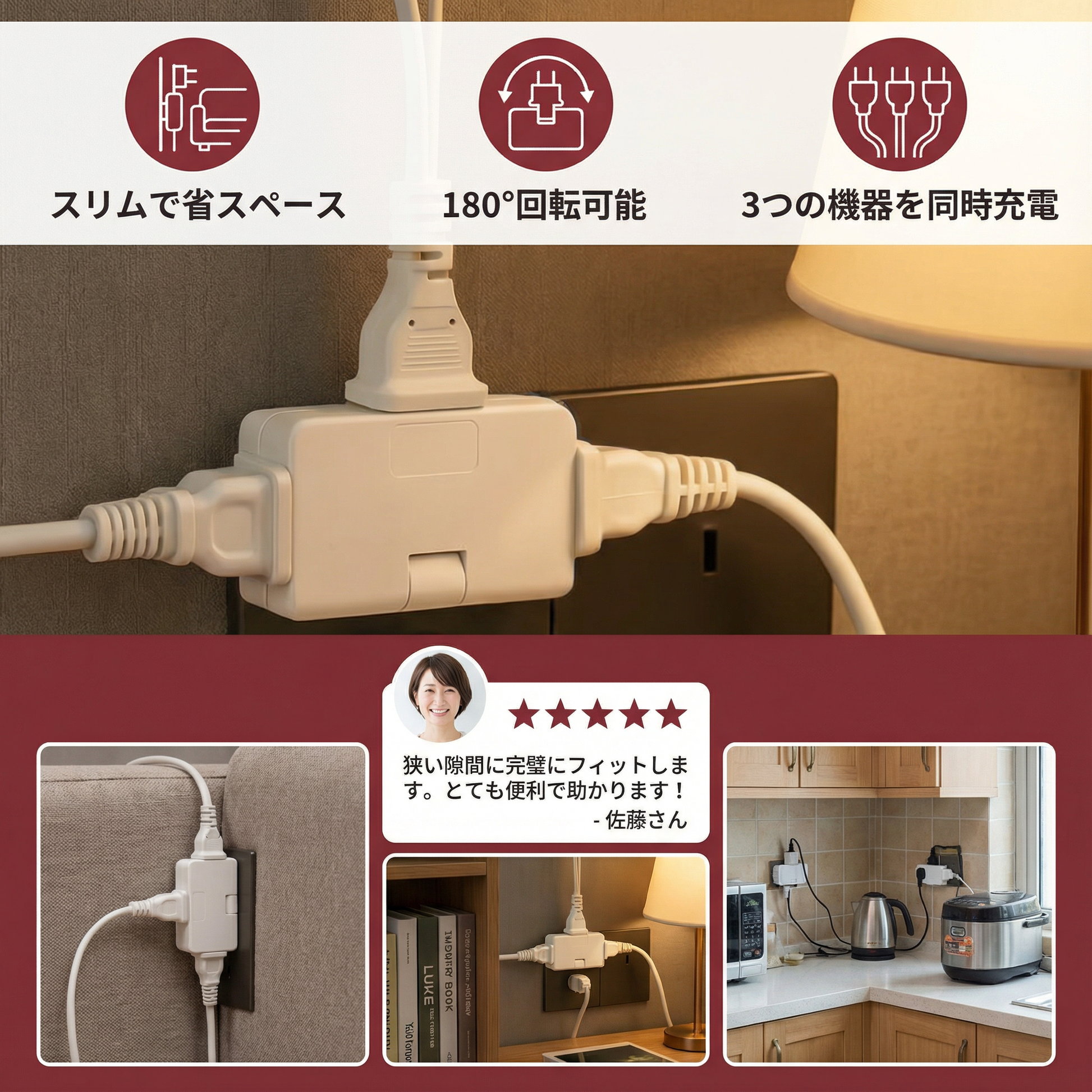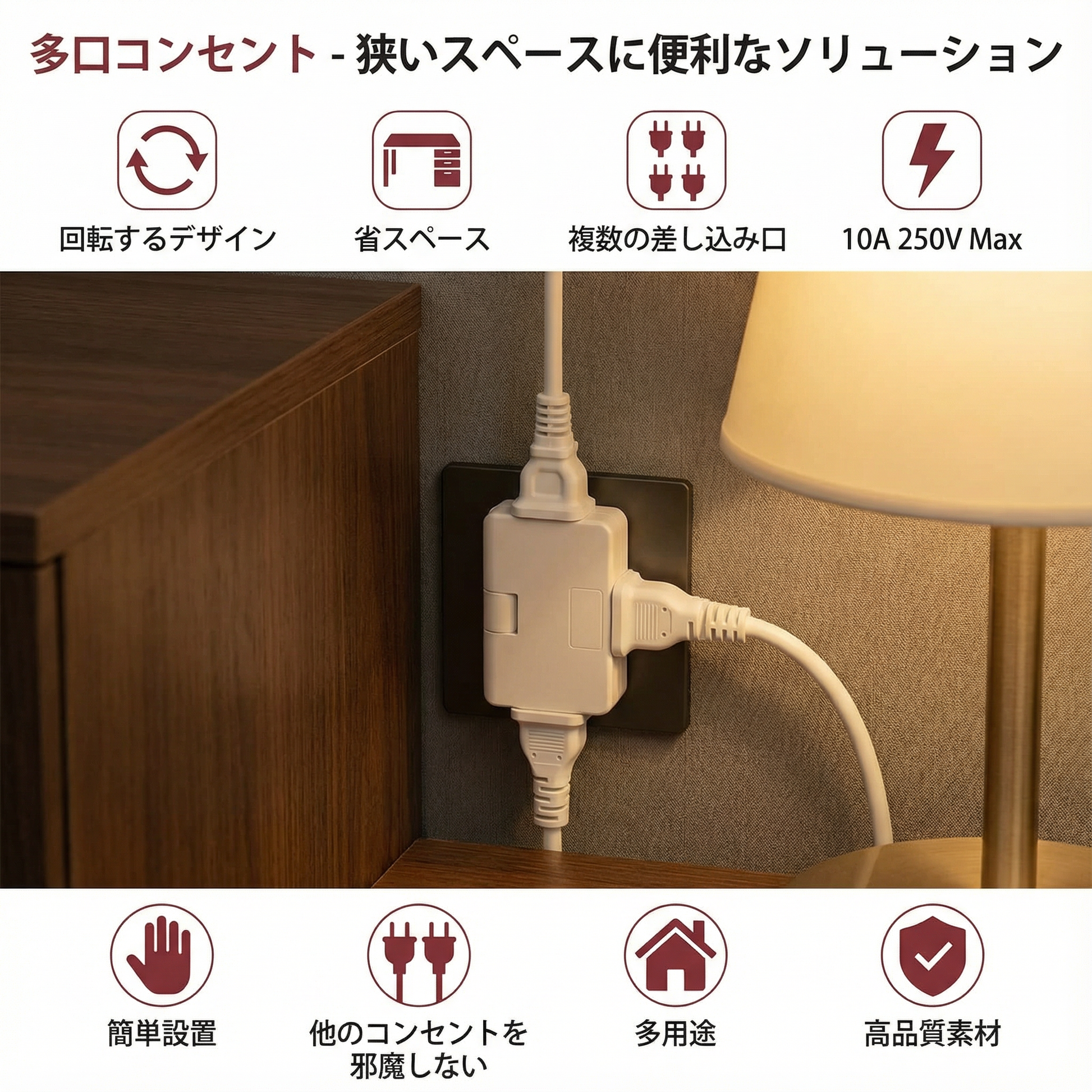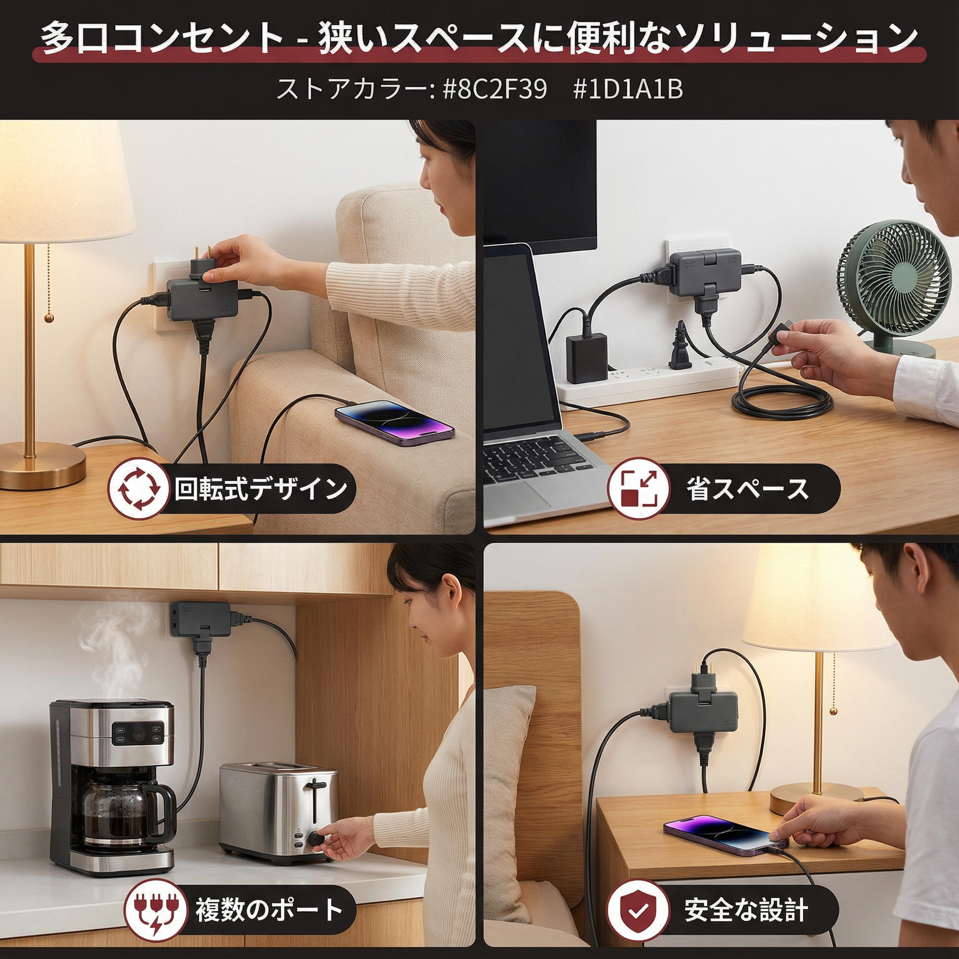 便利な多口アングルコンセント – 狭いスペースに最適なサポート