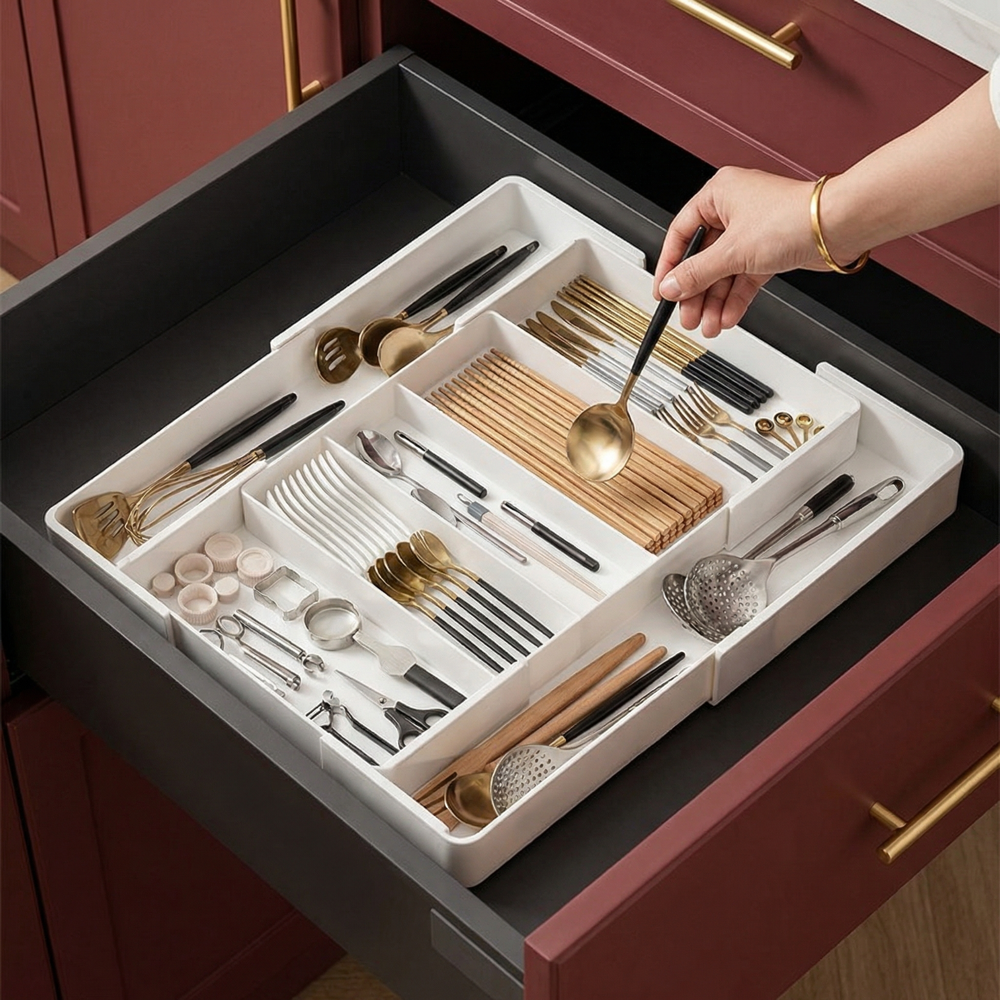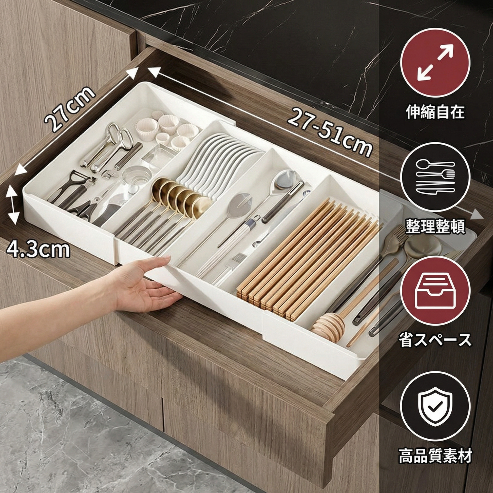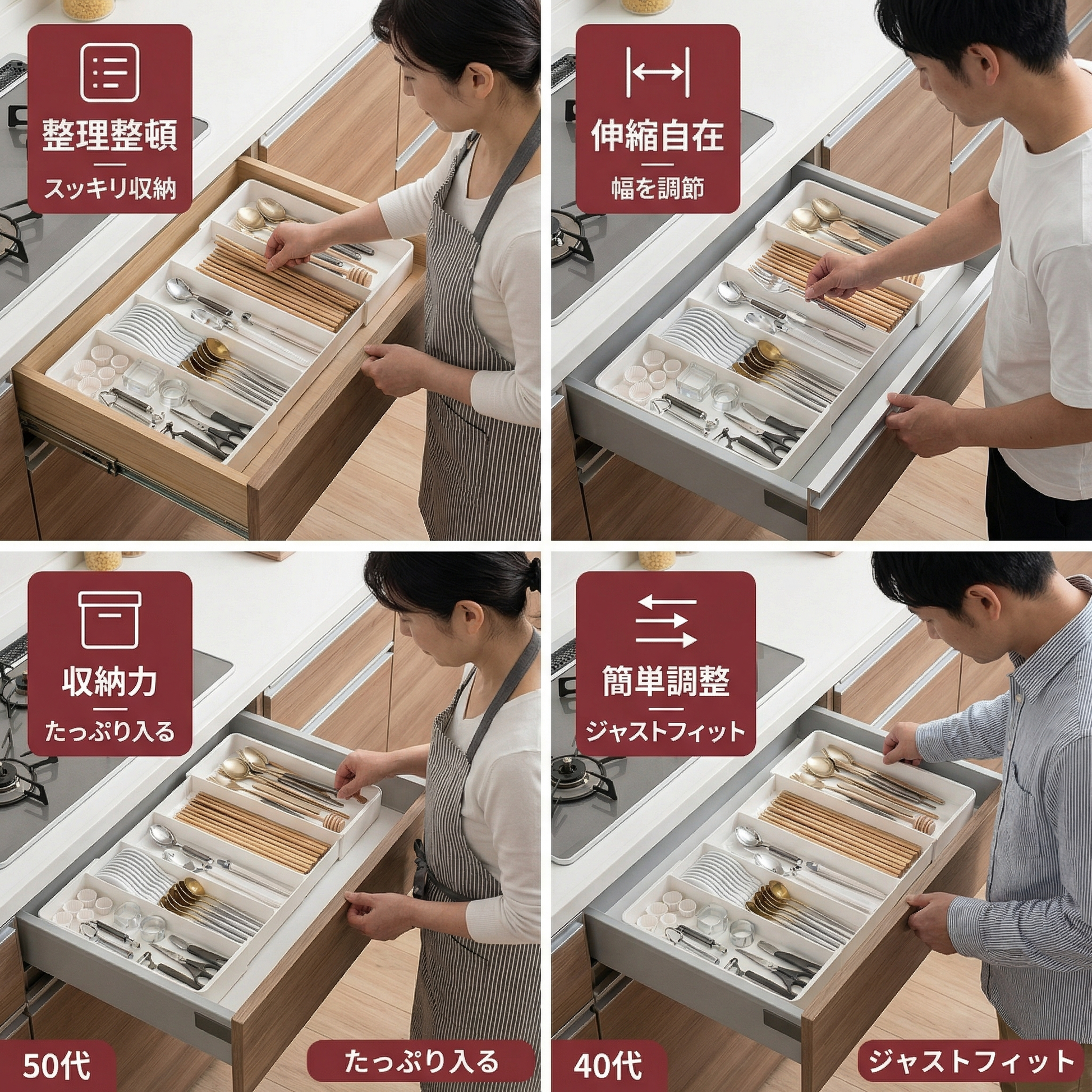 キッチンをスッキリ整頓 ― 引き出しオーガナイザー