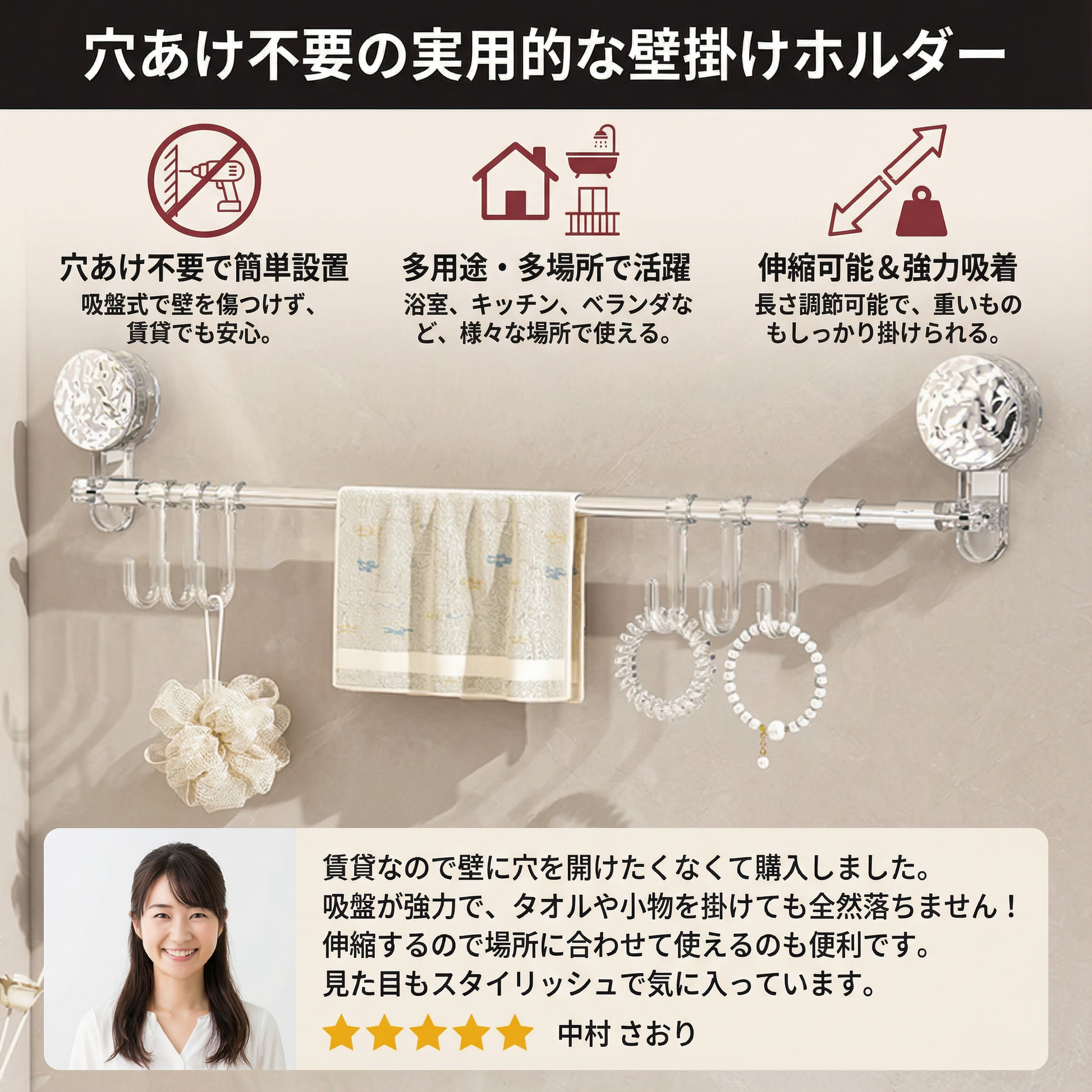 あなたの住まいに最適なソリューション – 穴あけ不要の実用的な壁掛けホルダー!